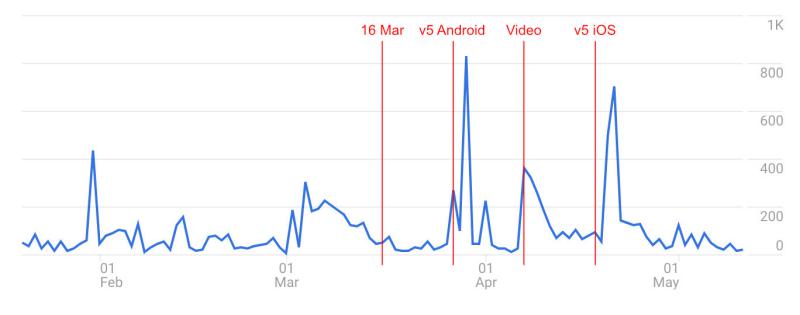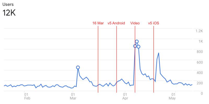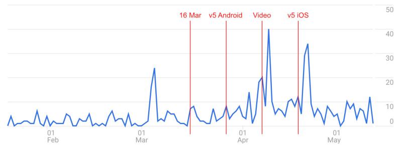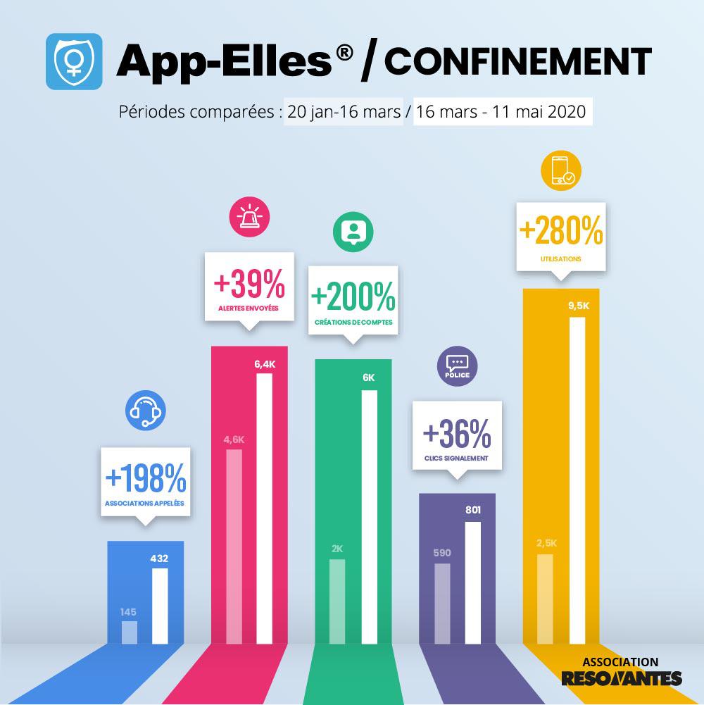 Au début du confinement le 16 mars 2020 les versions en production de App-Elles étaient les v.4 iOS et Android comprenant chacune des différences importantes d'implémentation et d’interfaces utilisateur. Durant le confinement nous avons du accèlérer la mise en production de la v.5 Android suivie trois semaines plus tard de la v.5 iOS afin de répondre à un besoin d’évolution et d’homogénéisation de nos applications.